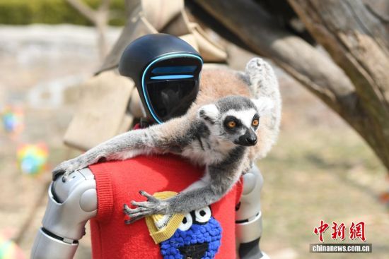 3月21日,位于青岛西海岸新区的青岛森林野生动物世界春风和煦,智能机器人、机器狗亮相巡游队伍,与舞蹈演员、杂技演员及各类动物一同前行,吸引大量游客驻足互动。今年清明节假期,该园将推出“AI青野·萌趣潮玩季”春季主题活动,其间每日都将举行AI机甲萌兽巡游。图为智能机器人与小动物互动。俞方平 摄