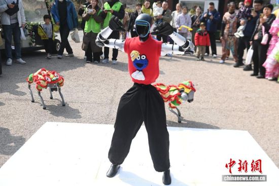 3月21日,位于青岛西海岸新区的青岛森林野生动物世界春风和煦,智能机器人、机器狗亮相巡游队伍,与舞蹈演员、杂技演员及各类动物一同前行,吸引大量游客驻足互动。今年清明节假期,该园将推出“AI青野·萌趣潮玩季”春季主题活动,其间每日都将举行AI机甲萌兽巡游。图为智能机器人、机器狗吸引大量游客驻足了解。俞方平 摄