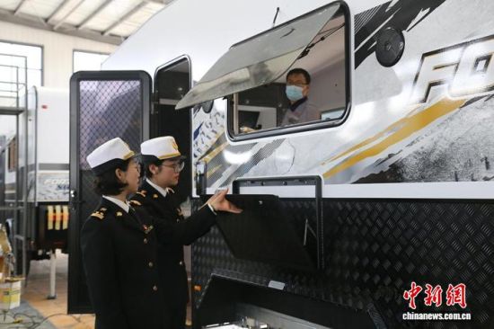 图为海关工作人员在房车企业调研。刘霄昂 摄