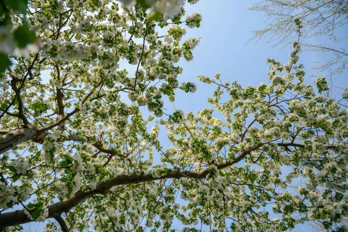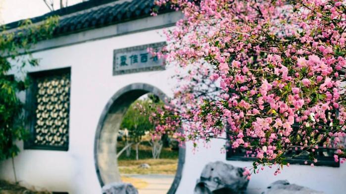 三月底,园博园海棠进入最佳观赏期。扬州园的海棠独植门前,如烟似雾;苏杭园的垂丝海棠热烈张扬;成都园的海棠温婉娇羞;北京园的西府海棠则别具风致,花朵较垂丝海棠更为硕大,白里透粉、粉中含白,清雅脱俗。远远便能嗅到一缕淡香,不浓不烈,恰好勾人驻足寻觅,四园景致各异,尽展海棠春韵。