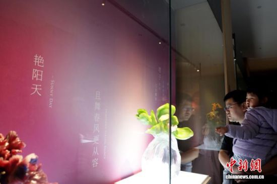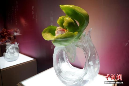 4月3日,山东淄博,“中国当代琉璃艺术语言的形成——杨惠姗、张毅联展”在淄博陶瓷琉璃博物馆开幕。图为台湾女演员、琉璃工房创始人、琉璃艺术家杨惠姗的琉璃作品。 李欣 摄
