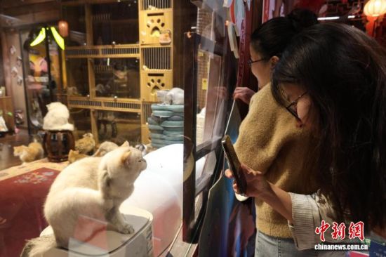 海岱楼钟书阁打造的“灵喵寺”吸引游客拍照。赵晓 摄