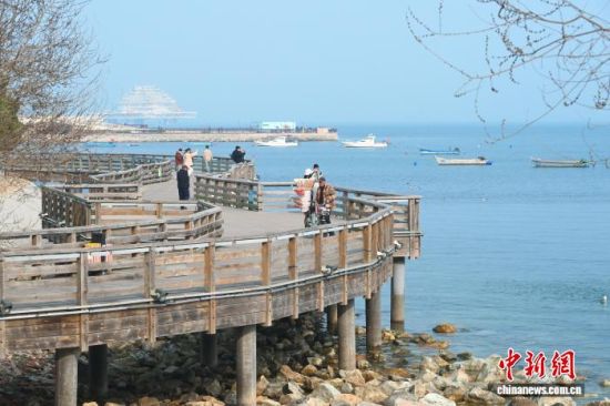 山东烟台:春风拂岸引游人
