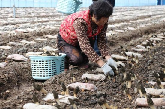 面对产业困境,葛浩顺带领党员南下考察,发现羊肚菌“亩产效益超万元、周期仅三个月”的特性非常适合本地沙壤土。面对村民“种菇能有种粮稳?”“赔了咋整?”的疑虑,他毅然承诺:“党支部先带头试!”