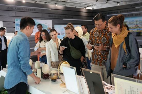 在乡村振兴会客厅内的節墨文化实践基地里,青年学者们对大厅陈列的蛋雕、大欧鸟笼、黄氏烙画等传统手造表现出浓厚兴趣。来自西班牙的知华讲堂研究员保罗表示:“这里出现最多的一个词就是‘文明’,这在道路两侧的宣传标语中随处可见,它们传递着维护文明的理念,以及保护文化遗产的思想,这是我最想深入思考的地方。”