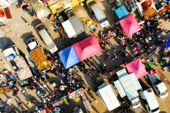 初冬时节,山东省青岛市城阳区上马街道民生大集迎来热闹赶集日,人们在琳琅满目的特色农产品中购物游玩,感受浓浓的烟火气息。近年来,当地积极推进宜居宜业和美乡村建设,更好满足群众生活需求。