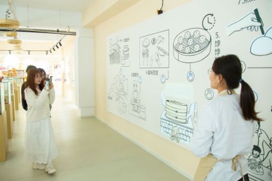 外国友人在了解王哥庄大馒头发展历史。谢顺伟 摄