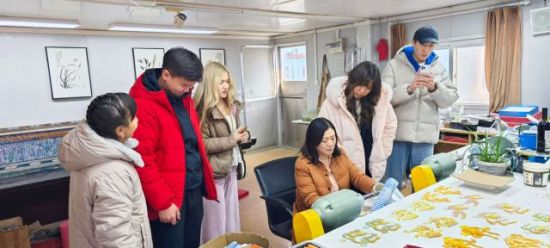 近日,“崂山韵·世界风——文化探秘之旅”第五场文化交流活动走进位于青岛市崂山区的青岛臻艺贝雕艺术中心。来自俄罗斯、吉尔吉斯斯坦等国家和地区的青岛大学留学生及在青外国友人,共同探访了这项以海洋馈赠为材、以崂山气韵为魂的海洋文化艺术遗产,在指尖方寸间感受山海之城的艺术创造力。