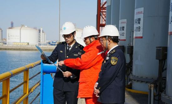 为确保华北地区的能源保供,董家口海事局联合青岛引航站、青岛LNG接收站等单位制定全链条精细化作业方案,提前研判海况,明确引航、系泊、安检等各环节责任分工与时间节点,细化船舶通航路线、应急处置流程等关键事项,确保船舶直进直靠、直离直出,全过程高效衔接、安全可控。