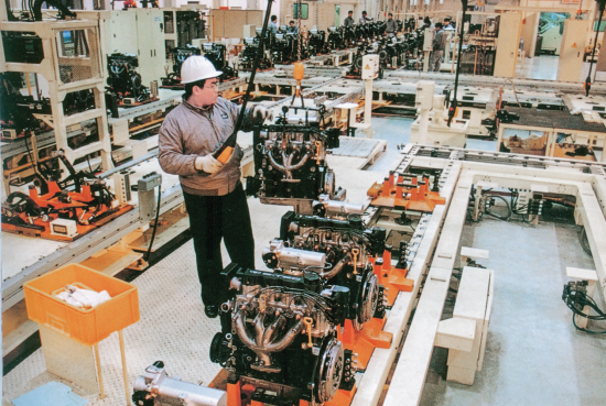 (20 世纪 90 年代一汽—大宇汽车发动机有限公司生产流水线)