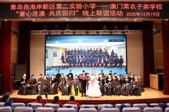 中新网山东新闻12月23日电 跨越山海,童心相聚。为庆祝澳门回归祖国26周年,也为增进姊妹学校间的深厚情谊,“童心向澳 共庆回归”澳门回归纪念主题线上活动日前在青岛西海岸新区第二实验小学与澳门菜农子弟学校温情启幕,两地师生共赴这场承载家国情怀的盛会。