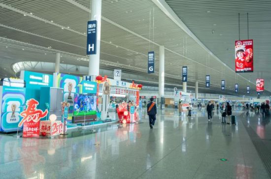 在航站楼,红灯笼、中国结、马年主题装饰与新春景观小品交相辉映,节日氛围浓厚。不少旅客在打卡点拍照留念。“行李里全是给家里带的年货,还有给孩子准备的小礼物。”准备飞往哈尔滨的王女士表示,“候机的时候还能领到福袋,感觉年味一下子就到了。”春节期间,在问讯台、K值机岛、安检通道、长途客运站等多区域多点位,青岛机场还将推出写福送福、盲盒互动、趣味问答、免费义诊等主题互动活动,旅客参与打卡可获得小马钥匙扣、福袋、挂件、手链等节日礼品,部分商铺同步推出新春优惠活动,为出行旅途增添温馨与惊喜。