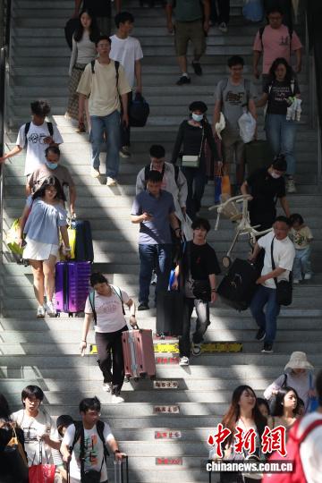 10月8日,江苏南京,旅客们在火车站出行。当日是国庆中秋假期最后一天,长三角铁路迎来返程客流最高峰。中新社记者 泱波 摄