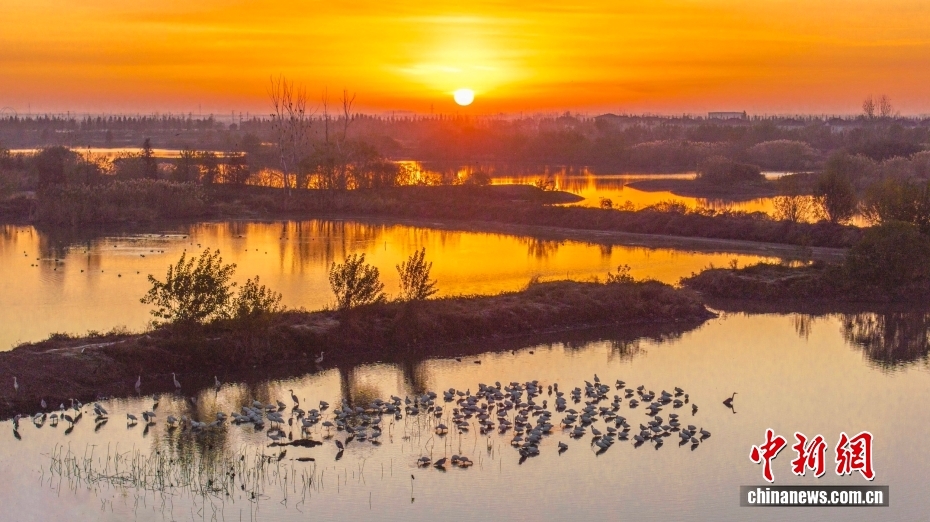 江苏兴化:候鸟飞抵湿地公园 浅滩觅食休憩(4)
