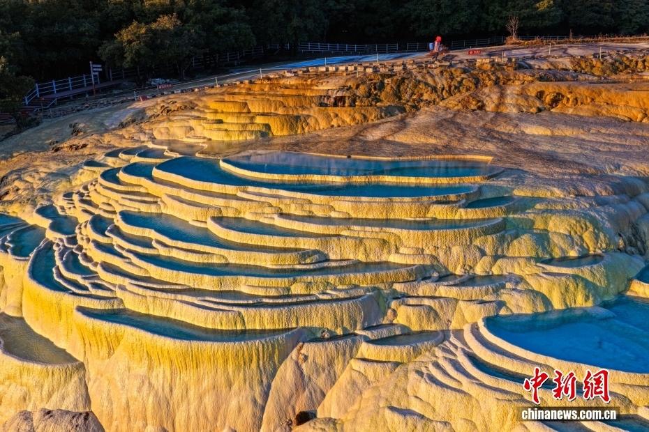 云南迪庆:日出时分 白水台“仙人遗田”染金边(3)