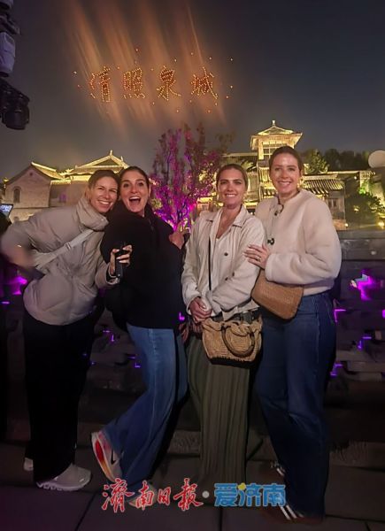 当日晚间,英国博主们乘船游览了清照泉城·明水古城,在夜色氤氲的水系间沉浸式感受江北水镇的古朴静谧。随后她们欣赏了以泉水和中国戏曲文化为主题的大型无人机编队表演与水上光影演出,光影与泉韵交织的夜色,不仅呈现出章丘的古韵新姿,也令英国博主们频频拍摄、赞叹不已。Serena表示:“明水古城的夜色与泉水太梦幻了,像走进一幅流动的画。”她认为无人机表演和水上实景演出完美展现了章丘历史文化与现代科技的结合,让人体会到一份跨越时空的美。