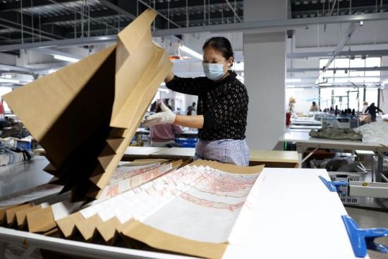 在宽敞明亮的生产车间里,长达300多米的生产线有序运转,缝纫、拼接、包装、装车,一派繁忙景象。