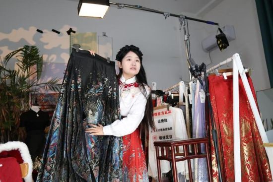 在曹县“穿越大唐”汉服云仓基地的展厅内,各类秋冬季新款传统服饰错落有致地陈列着。面对“双十一”销售旺季,基地负责人刘申峰介绍,他们的策略是推动产品从传统汉服向国风新中式转型,真正融入消费者的日常生活。这一贴近市场的转型策略成效显著,目前基地的日销售量已稳定在千单以上。