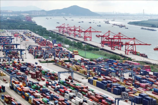 2024年9月19日拍摄的长江下游南京龙潭港进出口集装箱码头。(资料图)中新社记者 泱波 摄