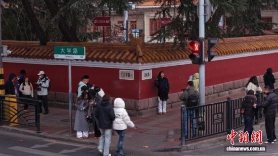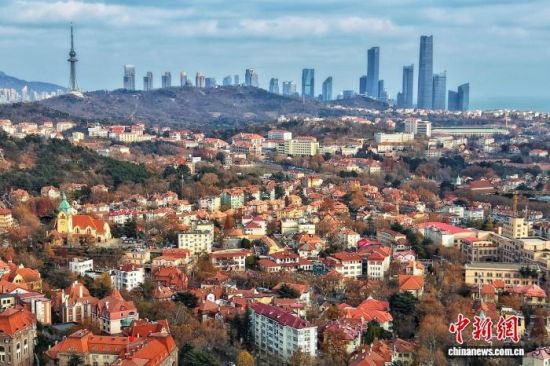 12月2日,山东青岛,红瓦洋房被彩叶环绕,澄澈的碧海与蔚蓝天空相接,红瓦、彩叶、碧海、老街相映成趣,勾勒出青岛兼具自然灵秀与人文底蕴的初冬画卷。王鑫 摄