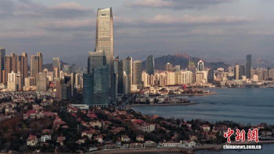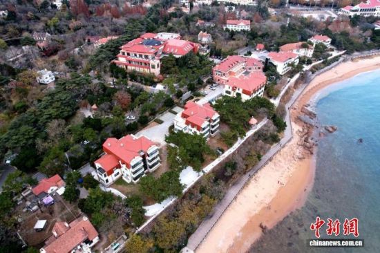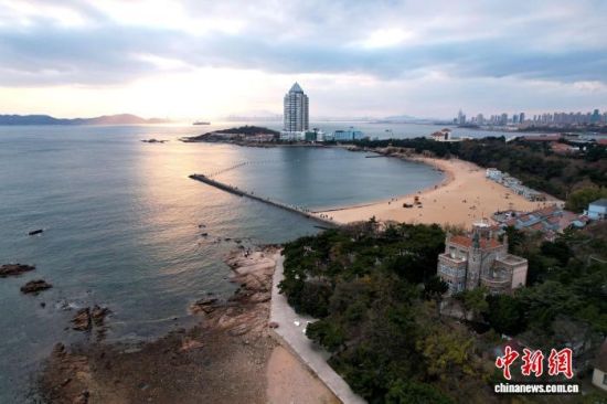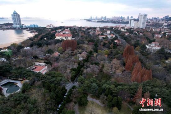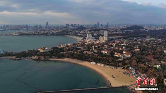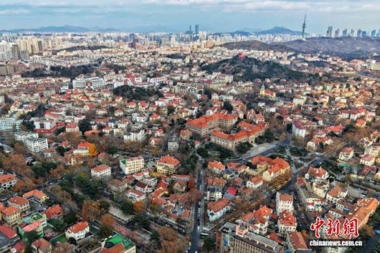 12月2日,山东青岛,红瓦洋房被彩叶环绕,澄澈的碧海与蔚蓝天空相接,红瓦、彩叶、碧海、老街相映成趣,勾勒出青岛兼具自然灵秀与人文底蕴的初冬画卷。(无人机照片)王鑫 摄