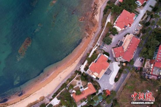 12月2日,山东青岛,红瓦洋房被彩叶环绕,澄澈的碧海与蔚蓝天空相接,红瓦、彩叶、碧海、老街相映成趣,勾勒出青岛兼具自然灵秀与人文底蕴的初冬画卷。(无人机照片)侯波 摄