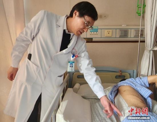 在医院病房,吴东进向记者介绍患者术后的矫正效果。赵晓 摄