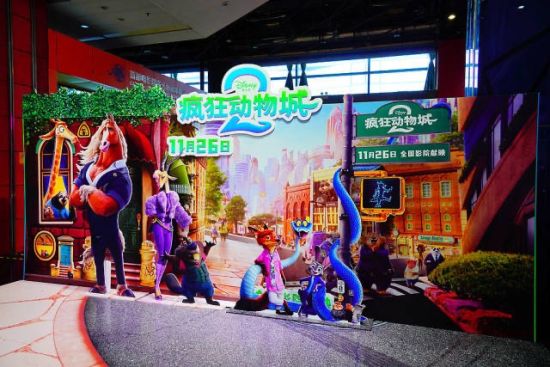 2025年12月3日,北京,西单大悦城首都电影院内摆放的《疯狂动物城2》巨幅海报。