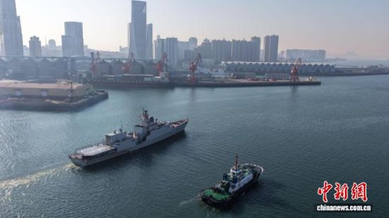 中新社青岛12月4日电 越南海军“陈兴道”号导弹护卫舰4日上午结束访问交流活动,离开中国青岛某军港。中方在码头举行欢送仪式,中国人民解放军北部战区海军官兵代表参加。