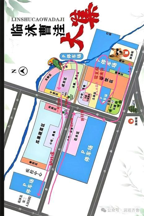导航定位:“临沭曹洼大集”(沭河大街曹洼农贸市场),东北侧、西南侧有免费停车场,辅路设临时车位,执法人员会引导,建议穿平底鞋步行逛集更自在。