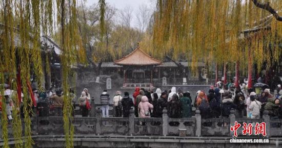12月12日,民众冒雪赏泉。侯波 摄