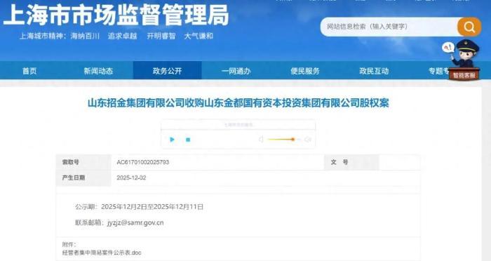近日,上海市市场监督管理局公示了山东招金集团有限公司(简称“招金集团”)收购山东金都国有资本投资集团有限公司(金都国投)股权案。