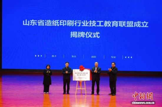 中新网潍坊12月19日电(记者 沙见龙)山东省造纸印刷行业技工教育联盟19日在位于山东潍坊的山东工业技师学院揭牌成立。联盟的成立,搭建起产业需求与人才供给精准对接的平台,将推动院校智力资源与企业实践平台深度融合,让人才培养更贴合产业发展痛点,让技术创新更精准赋能产业升级。