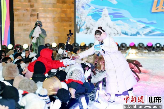 活动的热情并未止步于冰雪大世界的舞台,在充满风情的哈尔滨巴洛克风情街,山东文旅推介团将“好客山东”的舞台进一步延伸。伴随着《相亲相爱》的熟悉旋律,十六地市文旅推介官集体亮相,用各具特色的口号向冰城市民和全国游客发出诚挚邀请,“泉城济南欢迎您”“活力海洋之都青岛欢迎您”“进淄赶烤欢迎您”……一句句热情洋溢的邀约,与歌声交融,在街区上空回荡。活动现场,推介官们走入人群,将蕴含山东各地特色的小礼物送到游客手中,实现了一场从“舞台表演”到“街头互动”的无缝衔接。这份“边走边唱边送”的亲切,让“好客山东”的品牌形象更加可触、可感、可体验,也让冰城的冬天因齐鲁风情而格外温暖。