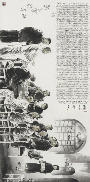其六,作为一项国家艺术基金资助项目,树立了高质量项目标杆。专家认为,该创作在尺寸规格与组画模式方面均属少见,创作过程堪比学术研究。艺术家耗费数年,对浩繁的史料、人物传记、旧文献影像进行了严谨细致的爬梳与考证,确保每一处场景、服饰、器物皆有历史依据。丰富翔实的文献支撑与高度完整、高超的艺术呈现,使其超越了普通个人创作项目结项要求,成为体现国家艺术基金扶持初衷的示范性成果。这套完整的创作档案,也为研究当代主题性美术的生成机制、方法演进提供了极具价值的个案。