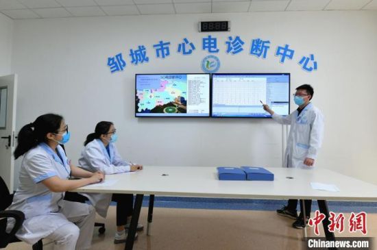 医生在邹城市心电诊断中心远程诊断病情。邹城市委宣传部供图