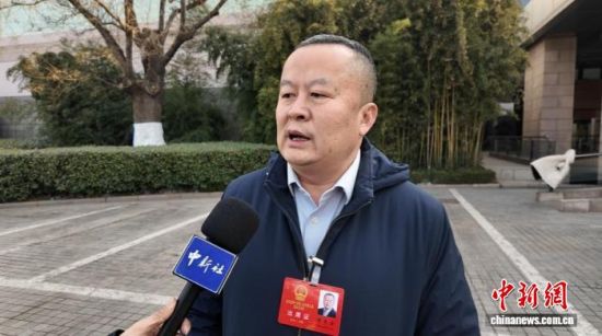 山东省人大代表、致公党菏泽市委会副主委侯宪会接受记者采访。王峰 摄