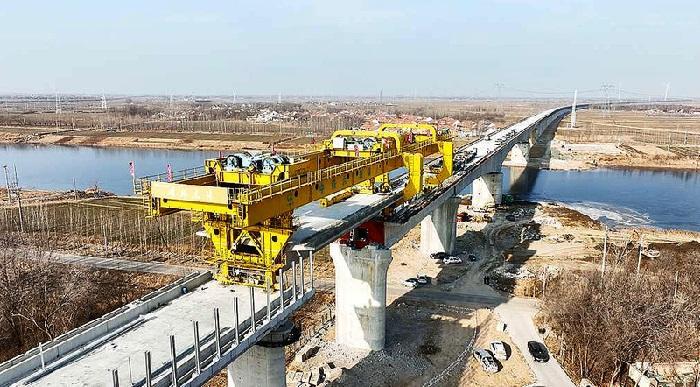 津潍高铁起自天津枢纽滨海站,经天津市滨海新区、河北省沧州市、山东省德州市、滨州市、东营市、潍坊市,终至济青高速铁路潍坊北站,设站10座,正线长度348.9公里,设计时速350公里。无棣县交通运输局党组成员、一级主任科员宋秀江介绍,津潍高铁(无棣段)主线已完成总工程量的83%。