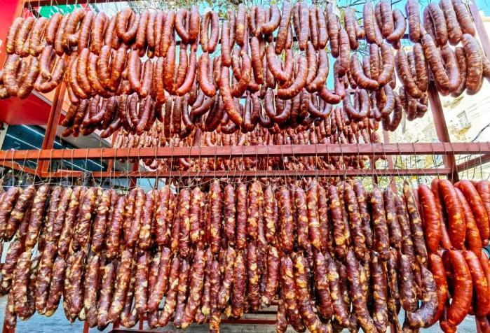 在山东,进入腊月,几乎家家户户都会灌香肠。大街上晾晒香肠的场景随处可见,阳台栏杆上、小院晾衣绳上甚至家门口的树枝上,都被安排得明明白白。这可不仅仅是一项美食制作活动,更是山东人心中年味的象征。