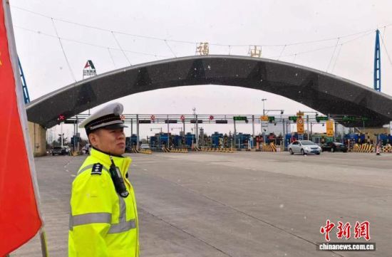 图为民警在山东烟台福山收费站执勤。方毅 摄