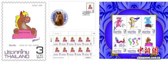 图为泰国发行的马年邮票及此前发行的生肖邮票。(图片来源:泰国《民族报》)