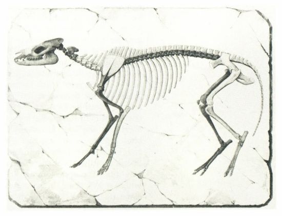 始祖马(约5600万年前,早始新世)体型如小狗,前脚四趾、后脚三趾,低冠齿,以嫩叶为食,森林栖息,是马科最早代表。