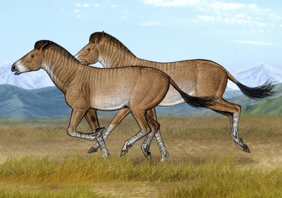 上新马(约1000万年前,晚中新世)中等马体型,单趾、侧趾退化为痕迹,高冠齿更特化,为真马直系祖先。