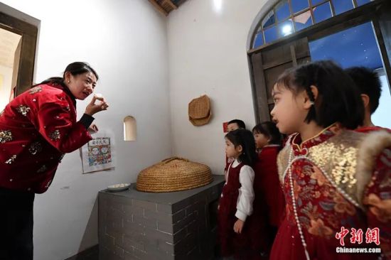 武强年画博物馆,孩子们听祭灶习俗。苏小立 摄