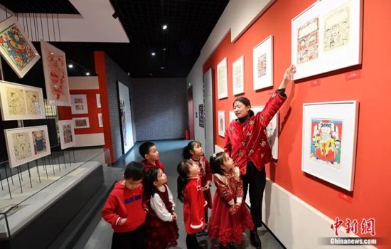 武强年画博物馆,孩子们在看《灶王爷》年画。苏小立 摄
