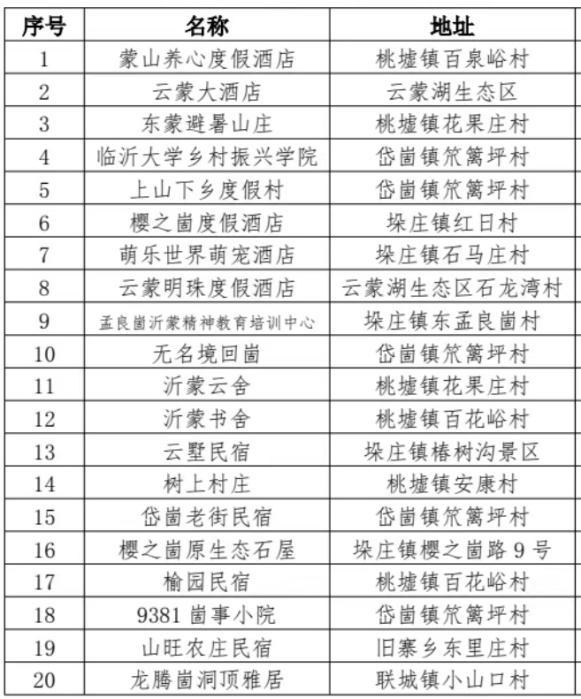 适用范围:蒙阴指定住宿企业