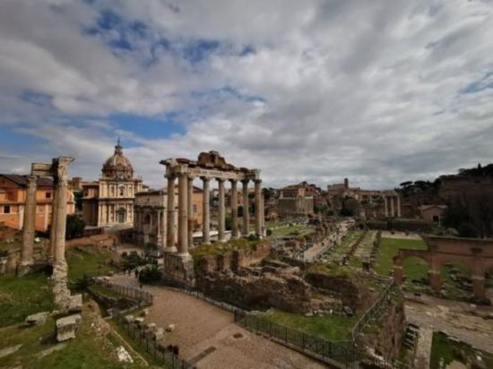 意大利古罗马广场。这片废墟中包含神庙、政府机构、剧场、教堂、商场等遗迹,罗马城最早的建筑很多位于此地,包括女灶神维斯塔的神庙。央视记者 张晓鹏 摄