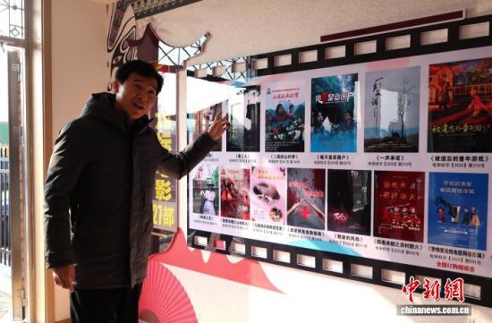 韩克向记者介绍剧团制作的数字电影。赵晓 摄