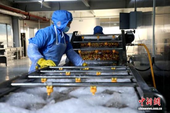 尚亿食品生产车间内,工人正在对新鲜冬枣进行筛选清洗。沾化区委宣传部供图