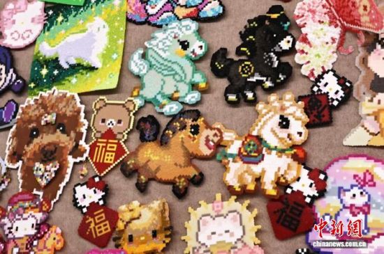 图为部分带有新年元素的拼豆作品。杨馥宁 摄